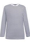 Long sleeve, ribbed neckline, twin needle stitching on hem and cuff.