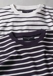 Short sleeve, ribbed neckline, twin needle stitching on hem and cuff.