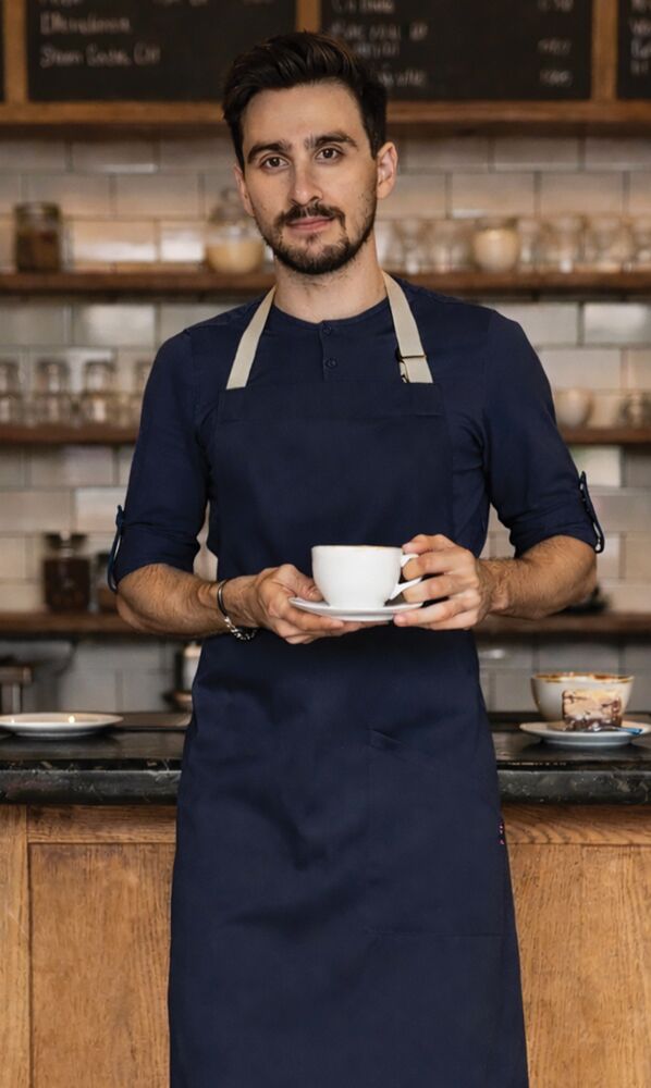 This range of aprons with their natural colour palette are perfect for today’s on trend styles and will fit in well with most modern surroundings. Likewise the mandarin collar, check and roll sleeve shirts are a very popular choice for current uniforms